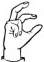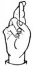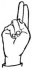 На ћирилици написано ХАНА КАЗИМИРОВИЋ састоји се из 15 слова [?]. Исписано ћириличном једноручном азбуком за глувонеме: